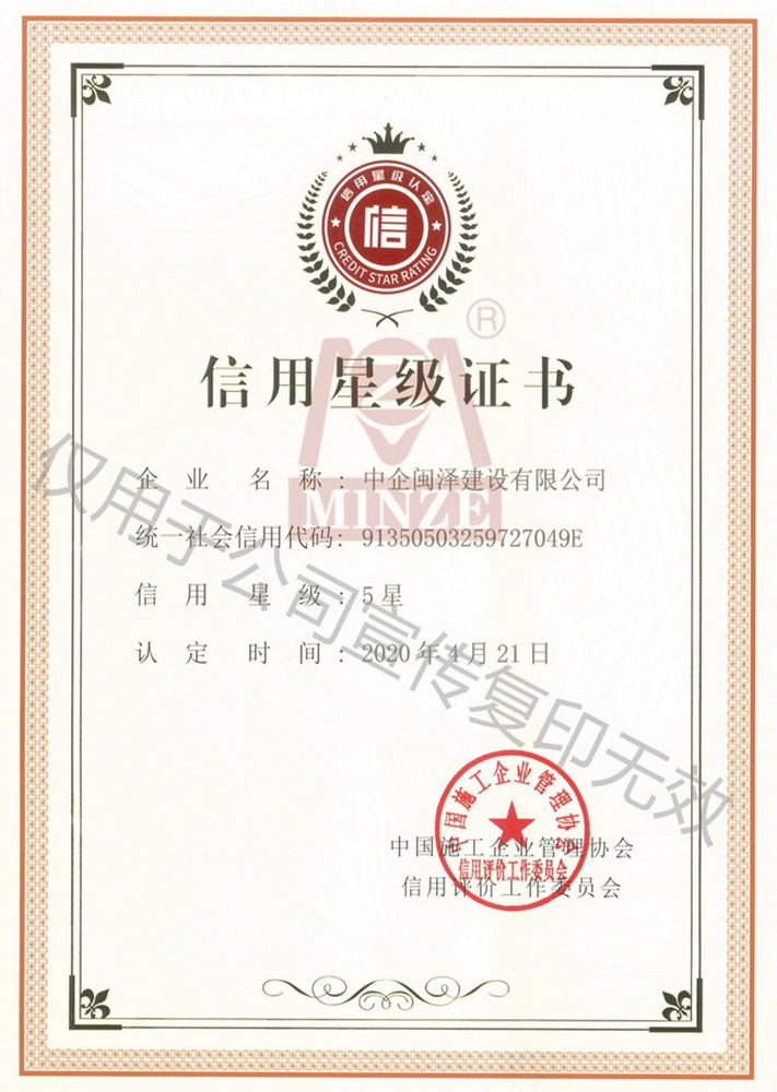 信用星級(jí)證書