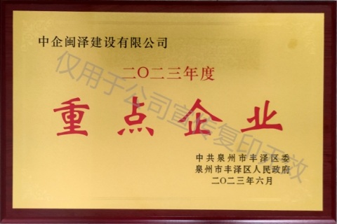 “重點(diǎn)企業(yè)”榮譽(yù)稱號(hào)